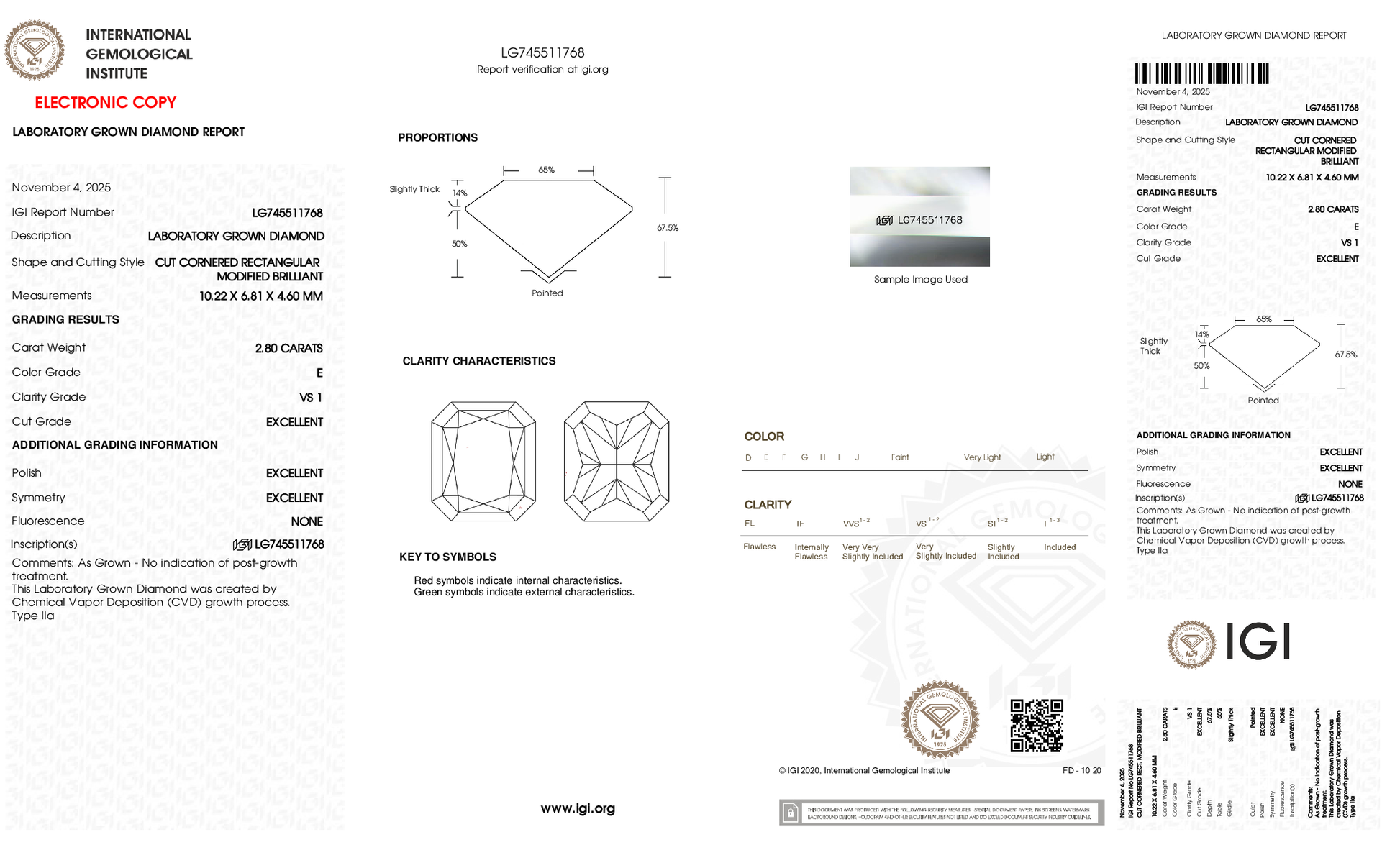 2.80ct Radiant Lab Grown Diamond (E, VS1, EX/EX/EX)