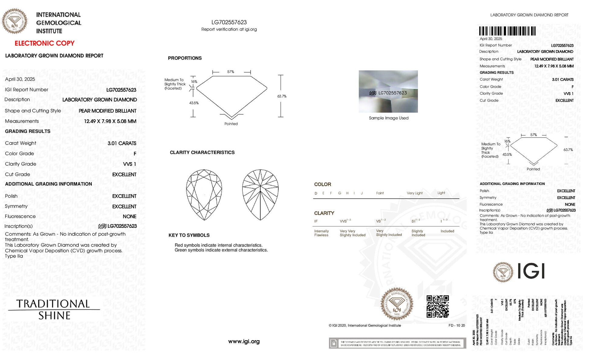 3.01ct Pear Lab Grown Diamond (F, VVS1, EX/EX/EX)